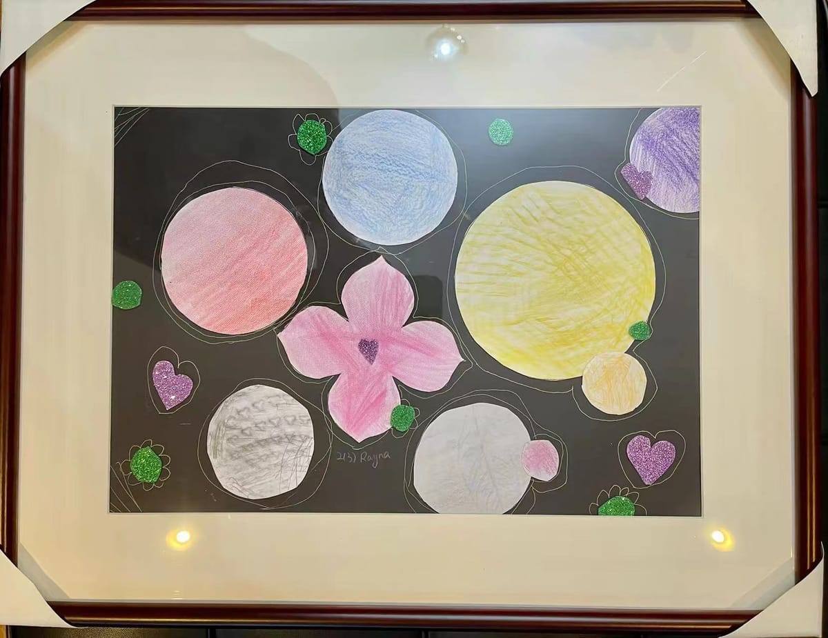 This thingy was my second grade art project --ALL ABOUT PATTERENS, the patterns as you can see on the circles ,was made from every day objects. Who ever guessed every single one must be a genius (Anserwer: blue& purple -the classroom floor ,red&pink - my homework folder,dark gray - bottom of a shoe ,light gray - a leaf , yellow& orange - I have no idea )